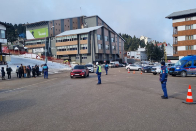 Jandarma ekipleri, yılbaşı eğlenceleri için zirveye gelenlerin gece saatlerinde olumsuz etkilenmemesi için tüm önlemlerini aldı. Kar lastiği olmayan vatandaşların zirveye çıkmasına izin verilmezken, araç trafiğinin akışını sağlamak için yoğun mesai harcıyor.