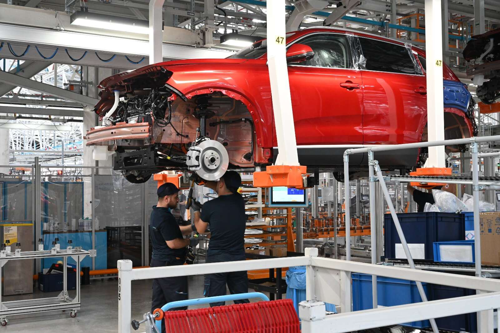 Togg Teknoloji Kampüsü’ndeki gövde, boya, montaj ve batarya olmam üzere dört ayrı bölümde üretim aşamaları hakkında bilgi alan heyete, Togg CEO’su Karakaş, mobilite ekosistemi, teknolojideki gelişmeler ve vizyonu içeren bir sunum yaptı.