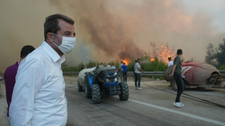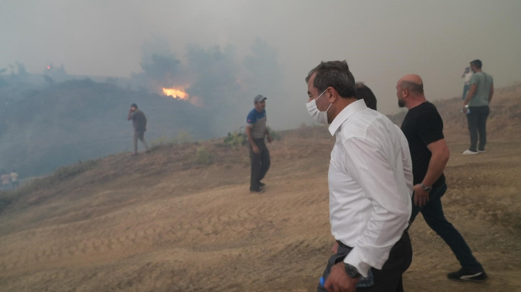 Belediye ekipleri ve desteğe gelen tüm ekiplerle tek tek ilgilenen ve yangın alanından bir an olsun ayrılmayan Başkan Mustafa Işık, çaresizlik içinde alevlerin arttığı anları izlerken, kimi zaman ağladı, kimi zaman çaresizlikle müdahaleleri izledi.