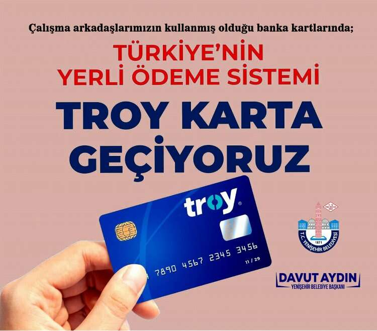 Bursa Yenişehir Belediyesi Bankalararası Kart Merkezince geliştirilen yerli kart TROY'a taşınması kararı aldı. Başkan Aydın Bankaya giderek ilk imzayı attı.