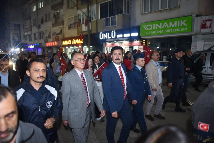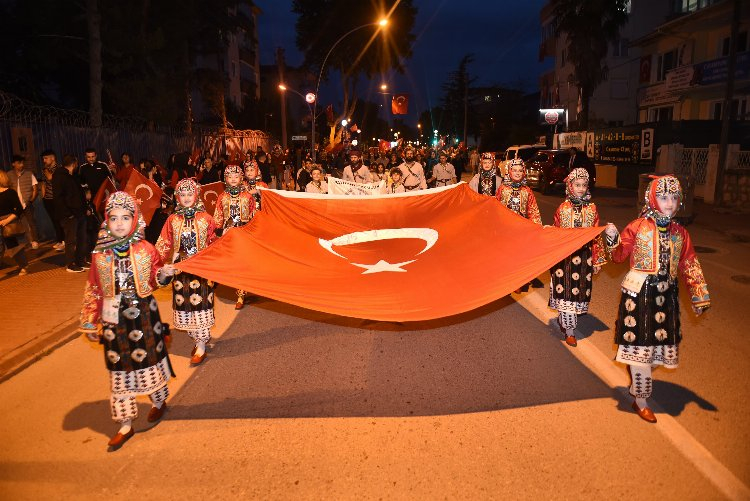 Yenişehir’de kutlamalar gün boyu devam ederken gece saatlerinde ise coşku arttı. Fincan Kafe’nin önünden Millet Bahçesi’ne kadar bando eşliğinde kortejle yürüyüş gerçekleştirildi. Yürüyüşe, ilçe protokolünün yanı sıra binlerce Yenişehirli de katıldı. Millet Bahçesi’nde kurulan sahnede ilk olarak Yenişehir Belediyesi Halk Oyunları ekibi sahne aldı. Gecede coşku Mavi Düş Grubu’nun konseriyle tavan yaptı.