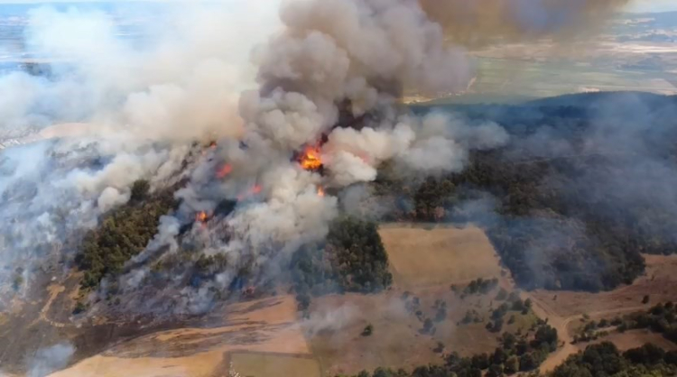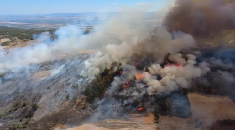 Bursa'nın Yenişehir ilçesi Fethiye Mahallesi'ndeki ormanlık alanda başlayan yangın, havadan görüntülendi. Rüzgarın da etkisiyle alevler büyümeye devam ediyor.
