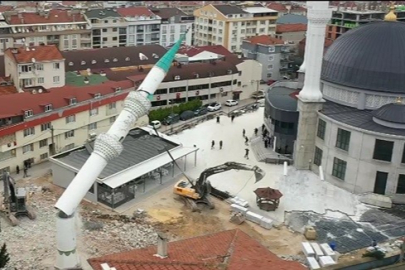 İş makinesinin önce deldiği minare daha sonra çelik halat ile bağlanıp başka bir iş makinesi ile çekilerek aşağıya indirildi. Yerleşim yerleri ile iç içe olan dev minare büyük bir ustalık ile hiç bir eve zarar vermeden yıkıldı. O anlar dron ile havadan da görüntülendi.