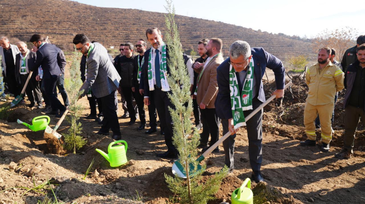 Bursaspor Kulübü Başkanı Enes Çelik, Teknik Direktör Tahsin Tam, Gürsu Belediye Başkanı Mustafa Işık ile beraber yeşil beyazlı futbolcular ile Uludağ Organize Sanayi yönetici ve iş insanları, Karahıdır ve İğdir bölgesinde yanan ormanlık alanlarda fidan dikimi gerçekleştirdi.