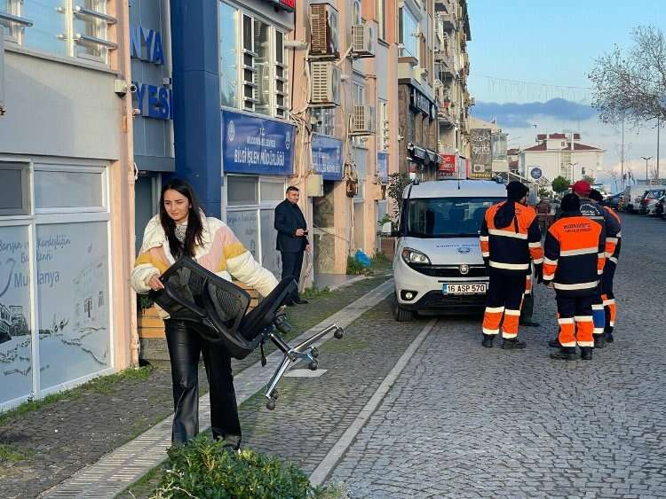 Mudanya Belediye binası, yıkılma riskine karşı tahliyesine başlandı. Dün yaşanan depremin ardından içeri girmeyen çalışanlar, bugünde işe geldiklerinde ise tahliye ile karşılaştı. Mudanya Belediye Başkanı Hayri Türkyılmaz, çalışanların vatandaşlara diğer ek binalarda hizmet vereceğini açıkladı.
