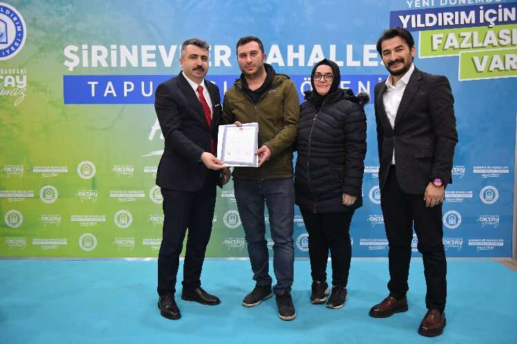 Yıldırım Belediyesi, Karapınar Mahallesi’nin ardından Şirinevler Mahallesi’nde tapu çalışmalarını tamamlayarak bin 254 hak sahibine imar parseli tapularını teslim ederken, 76 bin metrekarelik alanı kamulaştırma bedeli ödemeden Yıldırım’a kazandırdı.