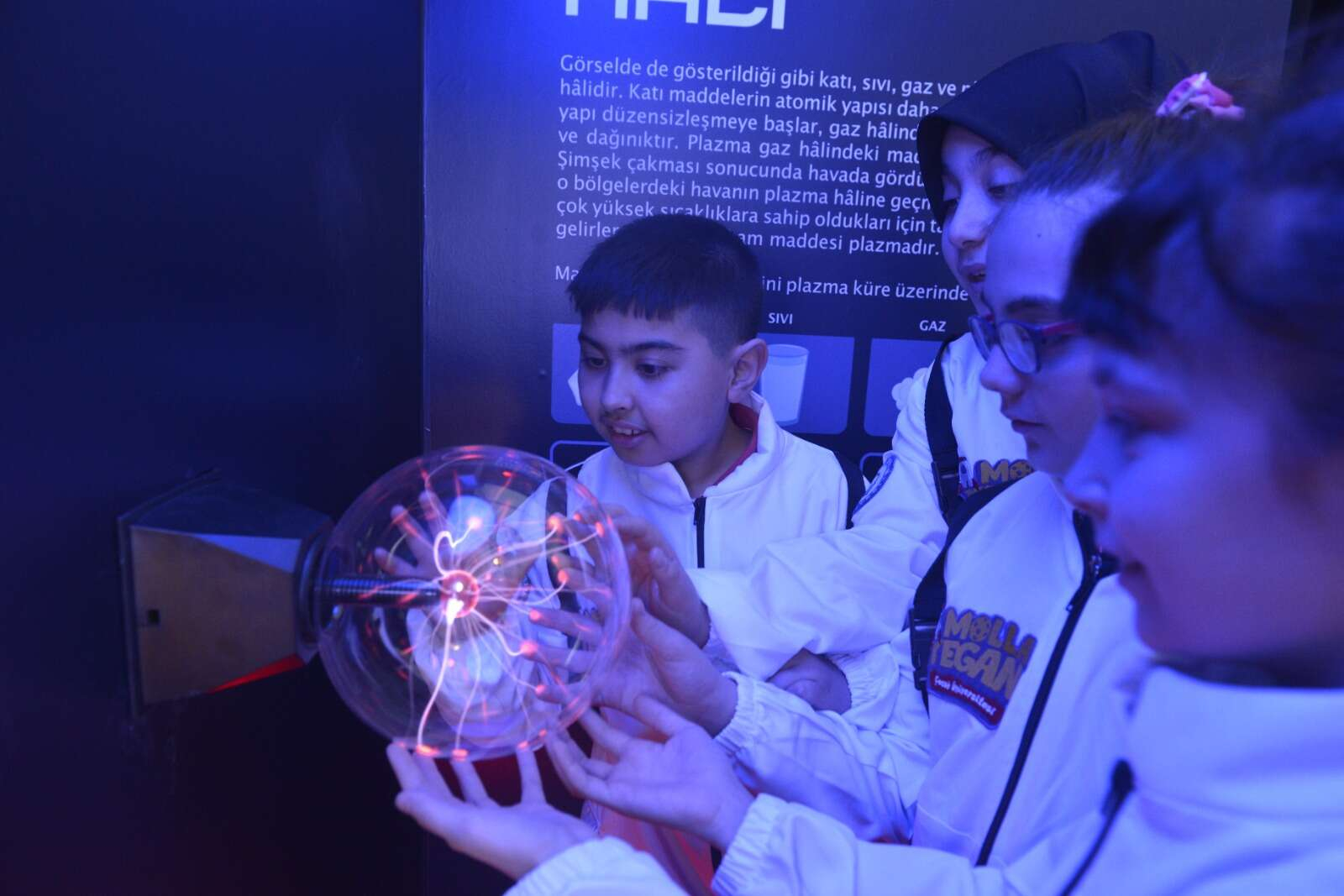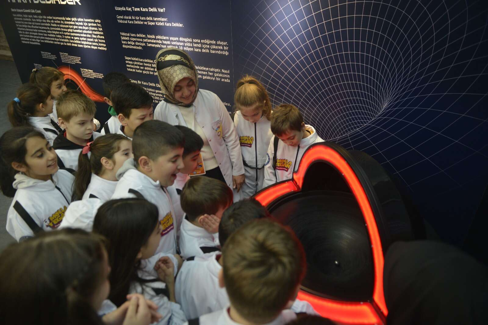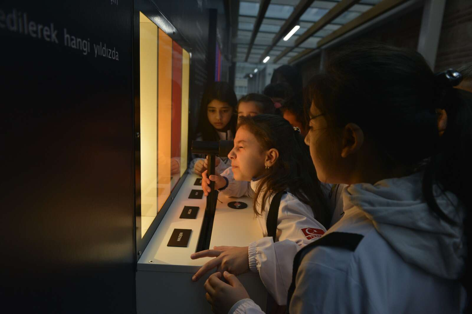 Sergi alanındaki karadeliklerin oluşumu, manyetik alanın doğası, gezegenlerin sesi, gece gündüz oluşumu, güneş sistemi ve evrendeki büyüklükleri, büyük patlama gibi bilgileri onlara özel dizayn edilmiş düzenekler ve donanımlar eşliğinde öğrenen uzay meraklıları son olarak dijital gösterim alanında izledikleri film sonrası sen evrensin uygulamasında yaptıkları roket ve astronot resimlerinin dev ekranda hareketli halini görüyor. Yaklaşık 2 saat süren uzay macerası sonunda astronotluğa merak salan çocuklar, verilen eğitimler için belediye ekiplerine teşekkür etti.