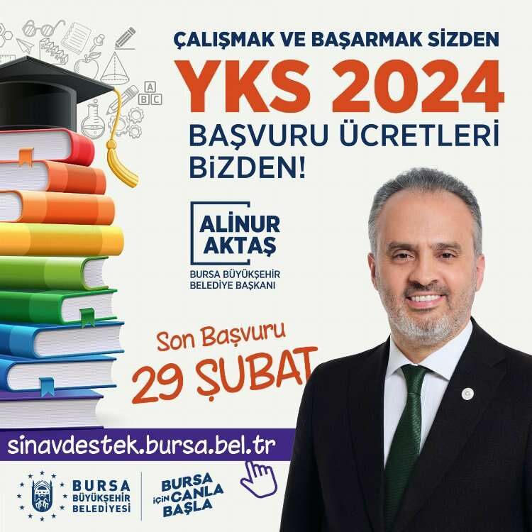 Üniversite sınavına hazırlanan gençlere müjdeyi bizzat kendi veren Bursa Büyükşehir Belediye Başkanı Alinur Aktaş, gençlere ve eğitime sundukları katkılarla ülkenin geleceğini daha sağlam ve daha güçlü bir şekilde inşa ettiklerini söyledi. BURSKOOP marifetiyle üniversite ve meslek lisesi öğrencilerine sağlanan bursların kapsamını lisans, yüksek lisans ve doktora öğrencilerini de kapsayacak şekilde genişlettiklerini ifade eden Başkan Aktaş, “Biliyorsunuz ki şehit ve gazilerimizin çocuklarının Yükseköğretim Kurumlarına giriş sınavında ücreti, Aile ve Sosyal Hizmetler Bakanlığımız tarafından karşılanıyor. Bizler de Bursa Büyükşehir Belediyesi olarak bu desteği şehrimizde YKS’ye girecek tüm ihtiyaç sahibi öğrencilerimiz için uyguluyoruz. Şehrimizdeki devlet okulları, özel okullar ve açık liselerde okumakta olan ya da mezun olan öğrencilerimizin; gerekli şartları taşımaları ve onaylanmış sınav başvuru formlarını ekleyerek sınavdestek.bursa.bel.tr adresi üzerinden 29 Şubat tarihine kadar online başvuru yapmaları halinde ödedikleri sınav ücretlerini hesaplarına iade ediyoruz. Verdiğimiz sözleri bir bir tutuyoruz. Çalışmak ve başarmak gençlerimizden, geleceğiniz için her türlü destek bizden” diye konuştu.