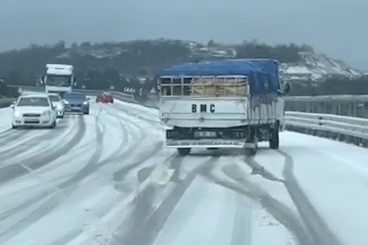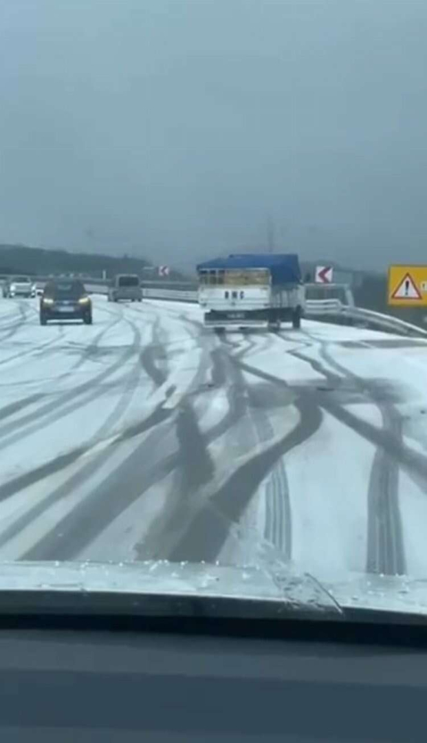 Kış şartlarına hazırlıksız yakalanan otomobiller buz tutan yolda ilerlemekte güçlük çekerken, bir kamyonet yolda adeta dans ederek ilerledi.