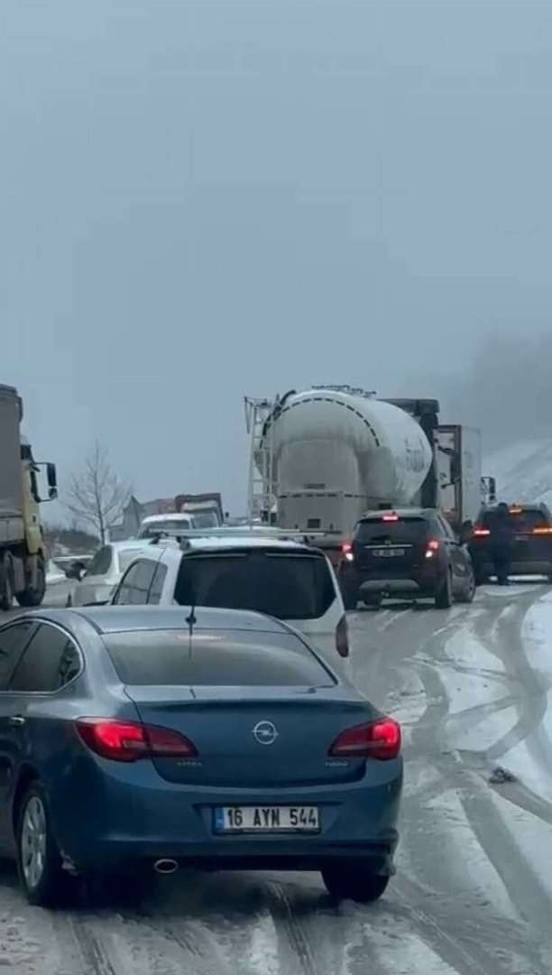 Bursa İznik'te gece saatlerinden itibaren yoğun kar yağışı etkisini gösterdi. İznik-Yenişehir yolunda oluşan buzlanma nedeniyle trafik durma noktasına geldi.