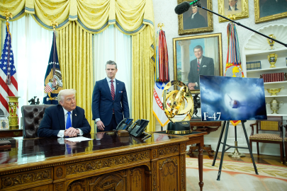 ABD Başkanı Donald Trump, Savunma Bakanı Pete Hegseth ile Beyaz Saray'daki Oval Ofis'te basının karşısına geçti. Gazetecilere açıklama yapan Trump, ABD yapımı 6. nesil savaş uçağı F-47'yi tanıttı. Boeing tarafından üretilecek olan jetin gizli özellikleri olduğunu belirten Trump, "Bu, bir savaş uçağının tüm özellikleri açısından daha önce hiç kimsenin görmediği bir şey. Hızından manevra kabiliyetine, taşıyabileceği yüküne kadar hiçbir şey buna yaklaşamaz" dedi.
