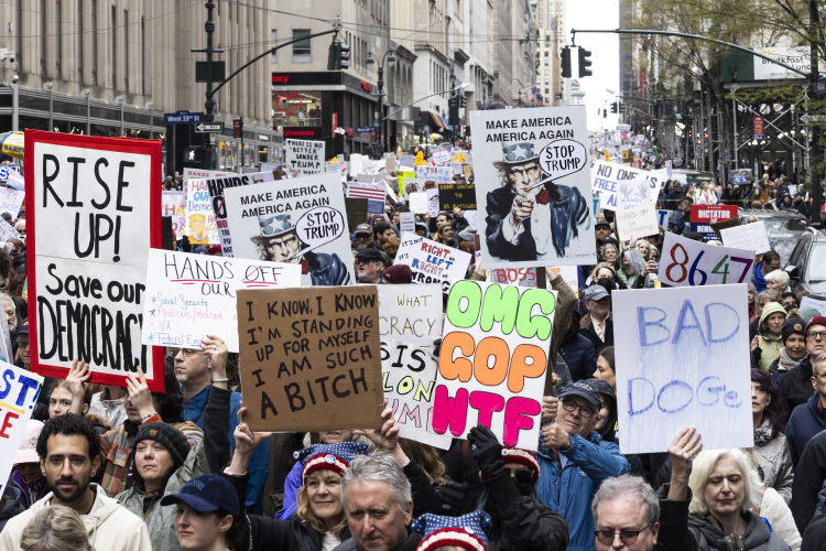 ABD’nin 50 eyaletinde eş zamanlı olarak yaklaşık bin 200 protesto gösterisi düzenlendi. ABD Başkanı Donald Trump ve Hükümet Verimliliği Departmanı'nın (DOGE) başındaki Elon Musk’ın politikalarını protesto etmek isteyen binlerce kişi başkent Washington D.C ve New York şehri başta olmak üzere ülke genelinde sokaklara döküldü. Başkent Washington’da kalabalık, "Bilimden elinizi çekin", "Yenilebilir enerjiden elinizi çekin", "Sosyal güvenlikten elinizi çekin" "Nazi Musk ve palyaço buradaki tek israf. Bizim demokrasimiz satılık değil" pankartlarıyla Trump ve Musk’a tepki gösterdi.