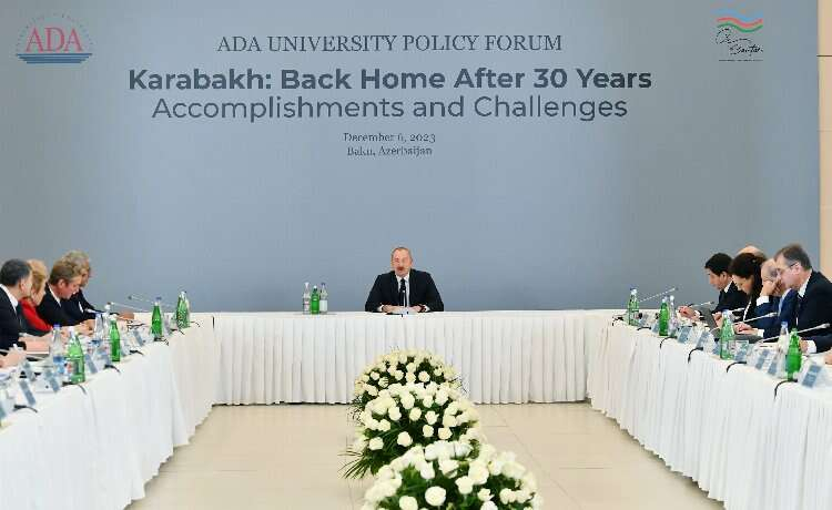 Azerbaycan Cumhurbaşkanı İlham Aliyev, Azerbaycan’ın başkenti Bakü’deki ADA Üniversitesi’nde düzenlenen “Karabağ: 30 yıl sonra eve dönüş. Başarılar ve Zorluklar” başlıklı foruma katılarak konuşma yaptı. Azerbaycan’ın Karabağ’daki egemenliği 2 buçuk yıl önce yeniden sağlandığında Karabağ'da çok sayıda Ermeni askeri gücünün bulunduğunu belirten Aliyev, “Bu güçlerin uluslararası hukukun bütün ilkelerini göz ardı ettiklerini gördük. Bu sorunun çözüleceğini umuyorduk. Bunun anormal bir durum olduğunu anladık ve İkinci Karabağ savaşının bitmesinin ardından tavrımız netleşti. Karabağ'da yaşayan insanların iki seçeneği vardı ya Azerbaycan vatandaşı olacaklardı ve onların tüm yasal hakları oluşturulacaktı, ya da yaşamak için başka yerleri seçeceklerdi. Başka yol yoktu” dedi.
