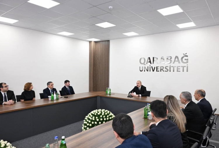 Üniversitenin 20 Eylül’de yapılacak açılışının Azerbaycan için tarihi bir anlam ifade ettiğini belirten Aliyev, “Karabağ Üniversitesi’nin kurulması tarihi bir olaydır. Geçen yıl kasım ayında kararname imzalandı ve gerekli talimatlar verildi. Sovyet döneminde inşa edilen bina yeniden düzenlendi, işgal sırasında Ermenileştirilme izleri tamamen silindi. Parklar yapıldı, yeni eğitim binaları ve yurtlar inşa edildi” dedi.