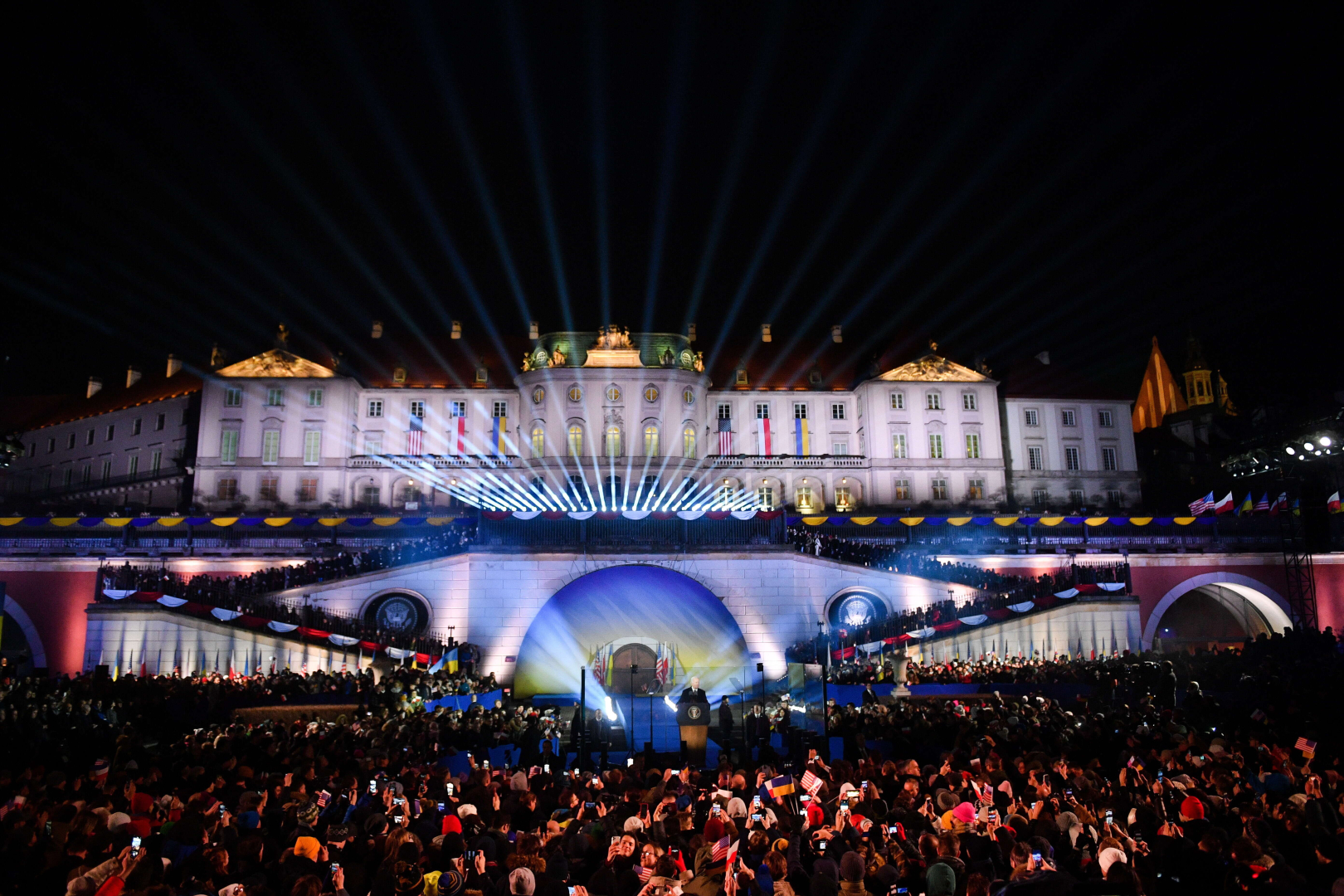 Duda’nın ardından sahneye çıkan Biden ise, konuşmasının başında Polonya'yı harika bir müttefik olarak nitelendirerek, Cumhurbaşkanı Duda’ya misafirperverlikleri için teşekkür etti. Biden, bir yıl önce Rusya Devlet Başkanı Putin'in "Ukrayna'ya kanlı saldırısını başlattığını" hatırlatarak, 75 yılı aşkın bir süredir barışın mihenk taşı olan küresel ilkelerin riske atıldığını ifade etti. Biden, “Bir yıl önce, dünya Kiev'in düşüşüne hazırlanıyordu. Kiev'den yeni geldim ve Kiev'in güçlü olduğunu söyleyebilirim" dedi.