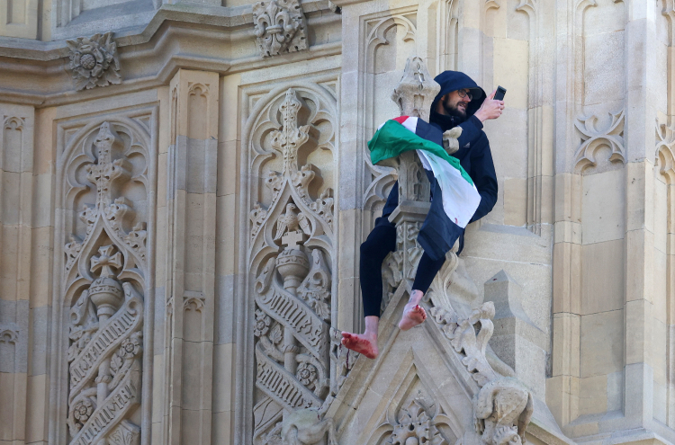 Big Ben'e tırmanarak Filistin bayrağı açtı
