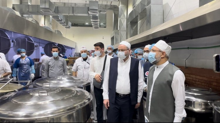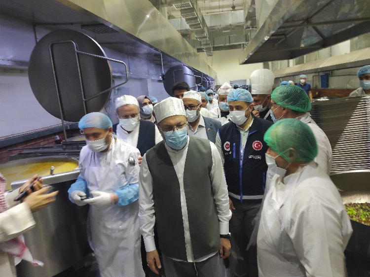 Diyanet İşleri Başkanlığı olarak hacı adaylarına en güzel şekilde hizmet etmek için çalıştıklarını ifade eden Ali Erbaş, “Özellikle hijyen açısından yemek hizmetlerini çok önemsiyoruz. Bizim mutfak kültürümüze uygun yemeklerimizi hacılarımıza sunuyoruz. Aşçılarımızı da Türkiye’den getiriyoruz. Bu mutfakta günlük 30 bin kişiye yemek hazırlıyoruz. Hac mevsiminin sonuna kadar bu çalışmaları devam ettireceğiz.” ifadelerini kullandı.