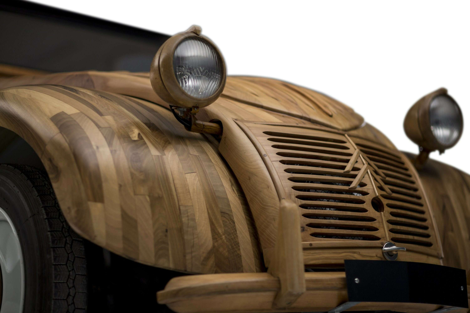 Fransa’da marangoz Michel Robillard tarafından elma, kiraz, ceviz ve armut ağaçları kullanılarak yapılan ahşap otomobil dün Tours şehrinde yapılan açık artırmada görücüye çıktı. Fransa’nın klasik Citroen 2CV model otomobilinden örnek alınarak yapılan ve değeri 150 bin-200 bin euro olarak belirlenen otomobil, Parisli bir koleksiyoncu tarafından 210 bin euroya satın alındı.