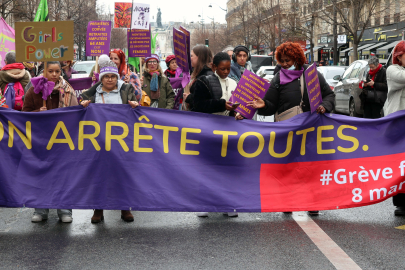 Fransa'nın başkenti Paris'te 8 Mart Dünya Kadınlar Günü dolayısıyla düzenlenen yürüyüşe katılan binlerce kişi kadına yönelik şiddet ve cinsiyet ayrımcılığı protesto etti.
