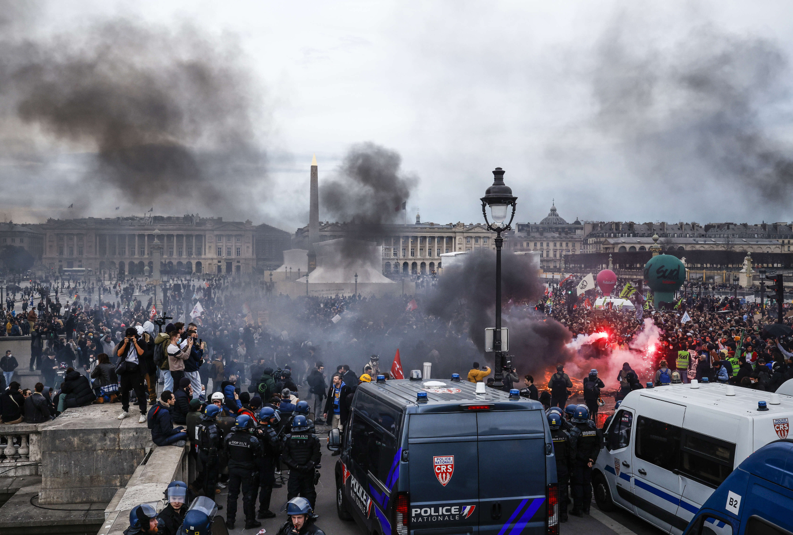 Fransa'da tepki çeken ve emeklilik yaşının kademeli olarak 64'e çıkarılmasını içeren reforma ilişkin yasa tasarısının Ulusal Meclis'te oylamaya sunulmadan onaylanması için Anayasa’nın 49. maddesinin 3. fıkrasının kullanılacağını açıklanmıştı. Fransa Başbakanı Elisabeth Borne tarafından yapılan açıklamanın ardından başkent Paris'te sokaklar karıştı. Reformun, Ulusal Meclis'te oylamaya sunulmadan geçmesine tepki gösteren binlerce protestocu Concorde Meydanı'nda bir araya geldi. Polis, kendisine taş atan öfkeli kalabalığı dağıtmak için göz yaşartıcı gaz kullandı.