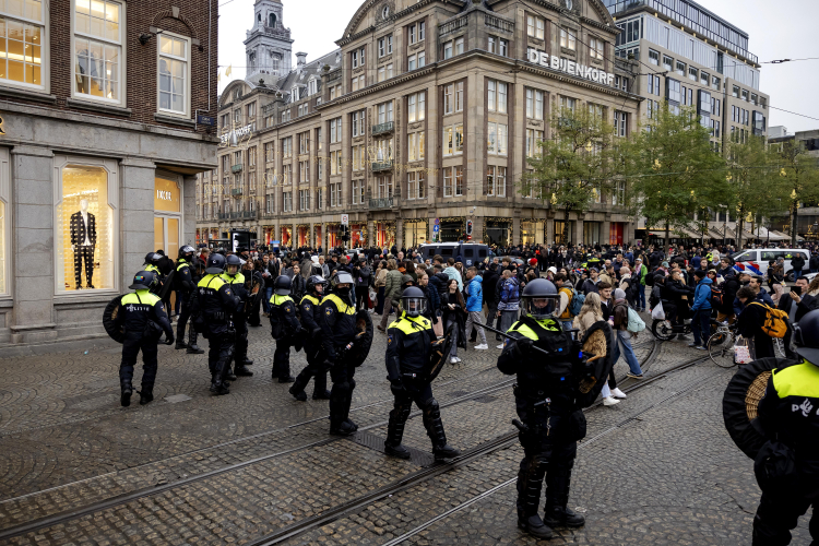 Hollanda'nın başkenti Amsterdam'da Filistin'e destek gösterisine sert müdahalede bulunan polis, 100'den fazla kişiyi gözaltına aldı.