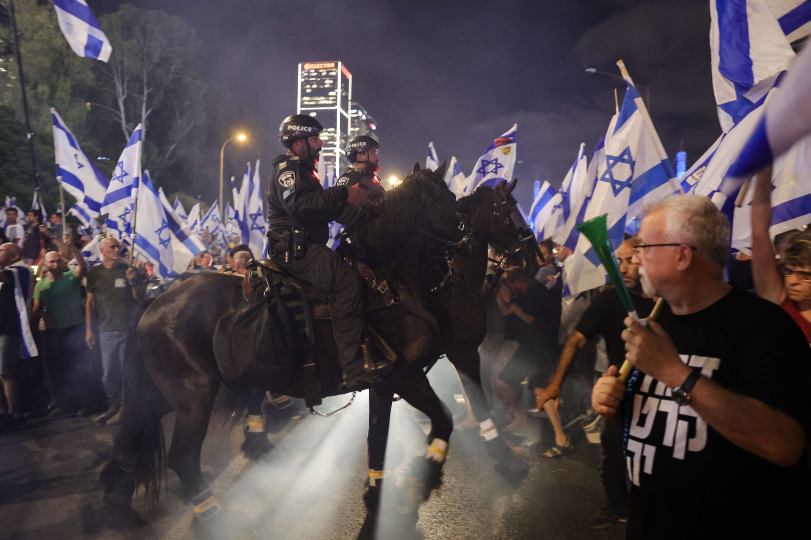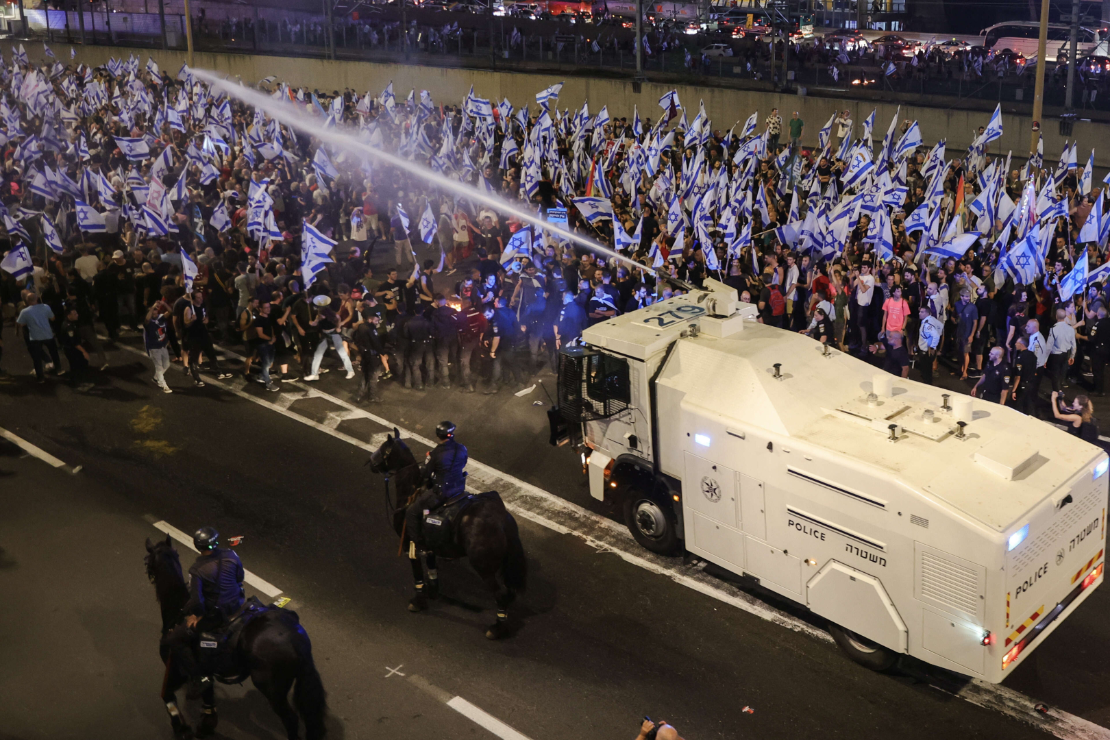 İsrail’de Tel Aviv Emniyet Müdürü Amichai Eshed’in baskı sonucu istifa etmesinin ardından yüzlerce kişi Eshed’e destek için sokağa indi. Başkent Tel Aviv’deki Ayalon Otoyolunu trafiğe kapatan göstericiler, ateş yakarak, havai fişek attı. Göstericileri dağıtmak için polis, tazyikli su ve copla müdahale etti.