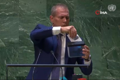BM Genel Kurulunda dün görüşülen, BM'de "gözlemci" statüsünde olan Filistin'e bazı haklar tanınması ve Filistin'in BM üyeliğinin BM Güvenlik Konseyi'nde tekrar görüşülmesi talep edilen karar tasarısı, İsrail'de rahatsızlığa yol açtı. İsrail'in BM Daimi Temsilcisi Gilad Erdan, Genel Kurul'da düzenlenen oturumda yaptığı konuşmada, Filistin'in örgüte üyeliğini destekleyen ülkelere tepki gösterdi. Erdan üyeliği destekleyen ülkeleri işaret edip, "BM Şartı'nı kendi ellerinizle parçalıyorsunuz" diyerek BM'nin kuruluş anlaşması belgesinin kopyasını yanında getirdiği kağıt öğütücüye koyarak parçaladı. İsrailli diplomatın skandal eylemi sosyal medyada kısa sürede gündem oldu.