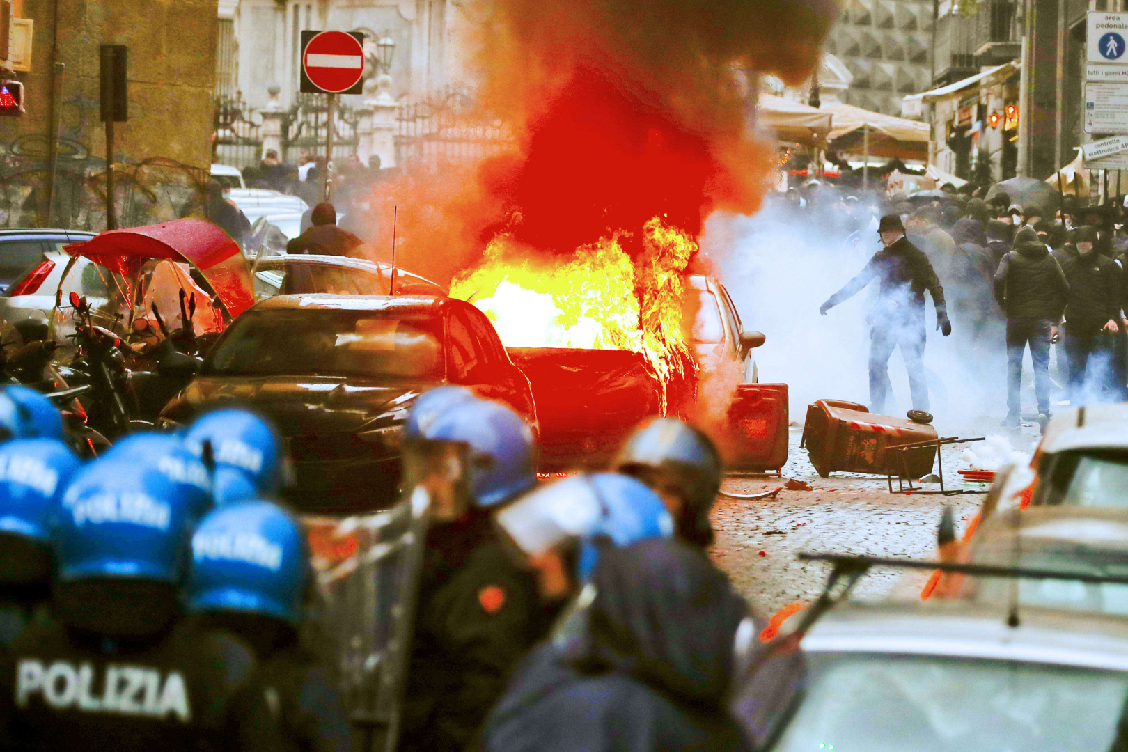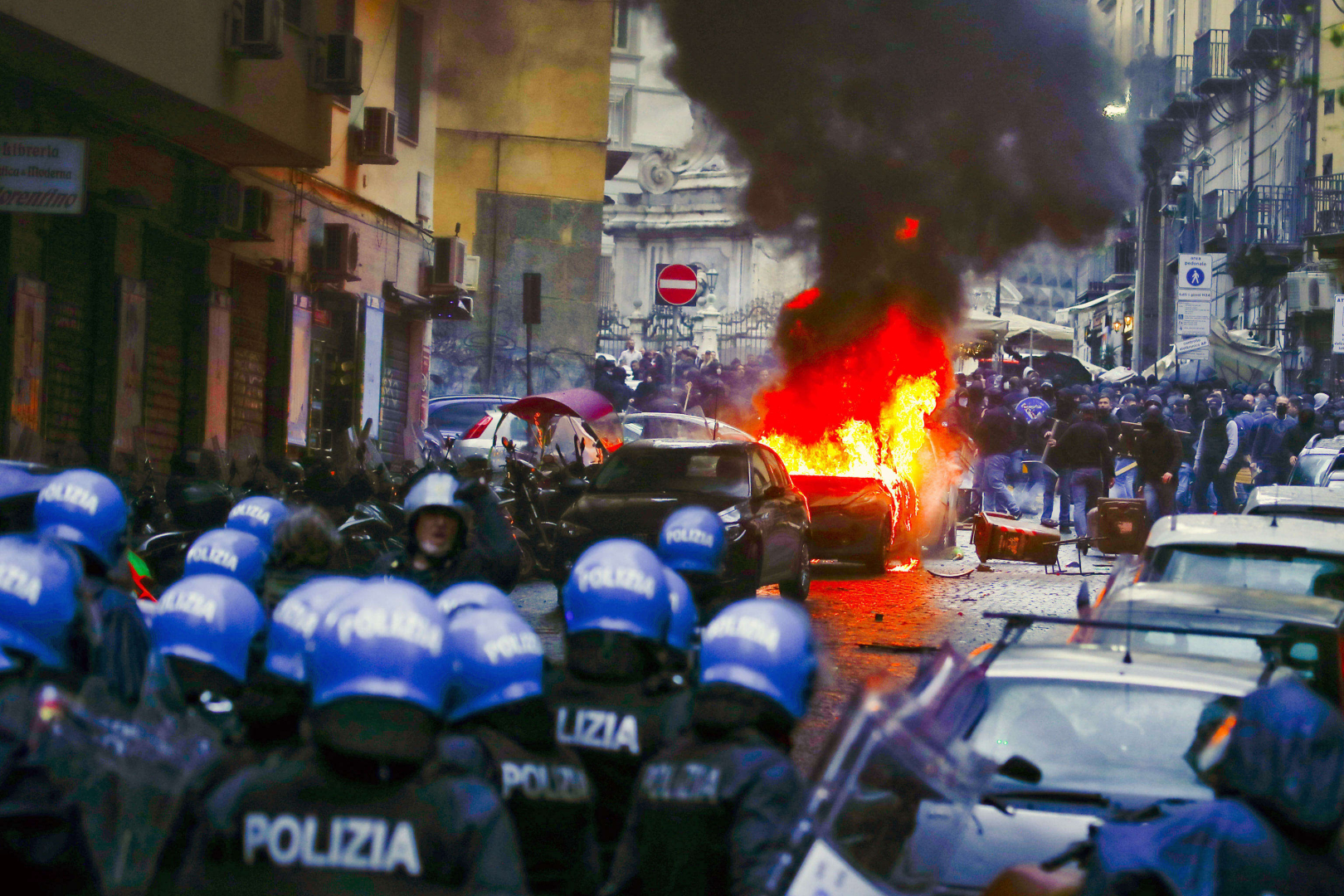 Avrupa futbolunun kulüp düzeyindeki en önemli organizasyonu UEFA Şampiyonlar Ligi'nde son 16 turu rövanş müsabakalarında İtalya temsilcisi Napoli ve Almanya temsilcisi Eintracht Frankfurt arasındaki maç öncesinde İtalya sokakları karıştı.