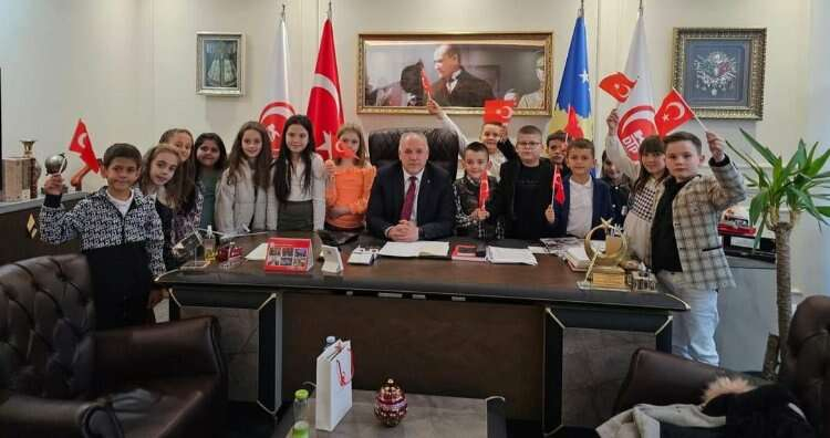 Prizren’in Çiryazi Kardeşler İlköğretim Okulu öğrencileri, çocuk bayramı dolayısıyla KDTP Genel Başkanı ve Bölgesel Kalkınma Bakanı Fikrim Damka’yı parti genel merkezinde ziyaret etti. Öğrencilerle sohbet eden Damka, “16-18 yaşınıza geldiğinizde bu partiye üye olup, bu partinin gençlik kollarında çalışmaya başlayacaksınız, yönetim kurullarında yer alacaksınız, üniversiteyi tamamlayacaksınız okuyacaksınız, partiye sahip çıkacaksınız. Buradaki Türk toplumunun geleceği sizlersiniz. O yüzden sizler kendinizi öğretmenlerin öğrettiği şekilde yetiştireceksiniz, iyi bireyler olacaksınız. Başarılı öğrenciler olacaksınız farklı dilleri öğreneceksiniz, İngilizceyi, Arnavutçayı öğreneceksiniz. Üniversiteyi bitirip Kosova’ya dönüp bu topraklarda bu Türk bayrağını dalgalandıracaksınız. Türk toplumunun geleceği sizlersiniz. O yüzden siz herkesten başarılı olmak zorundasınız. Bizim geleceğimiz başarılı çocuklarla, başarılı gençlerle olur” dedi.
