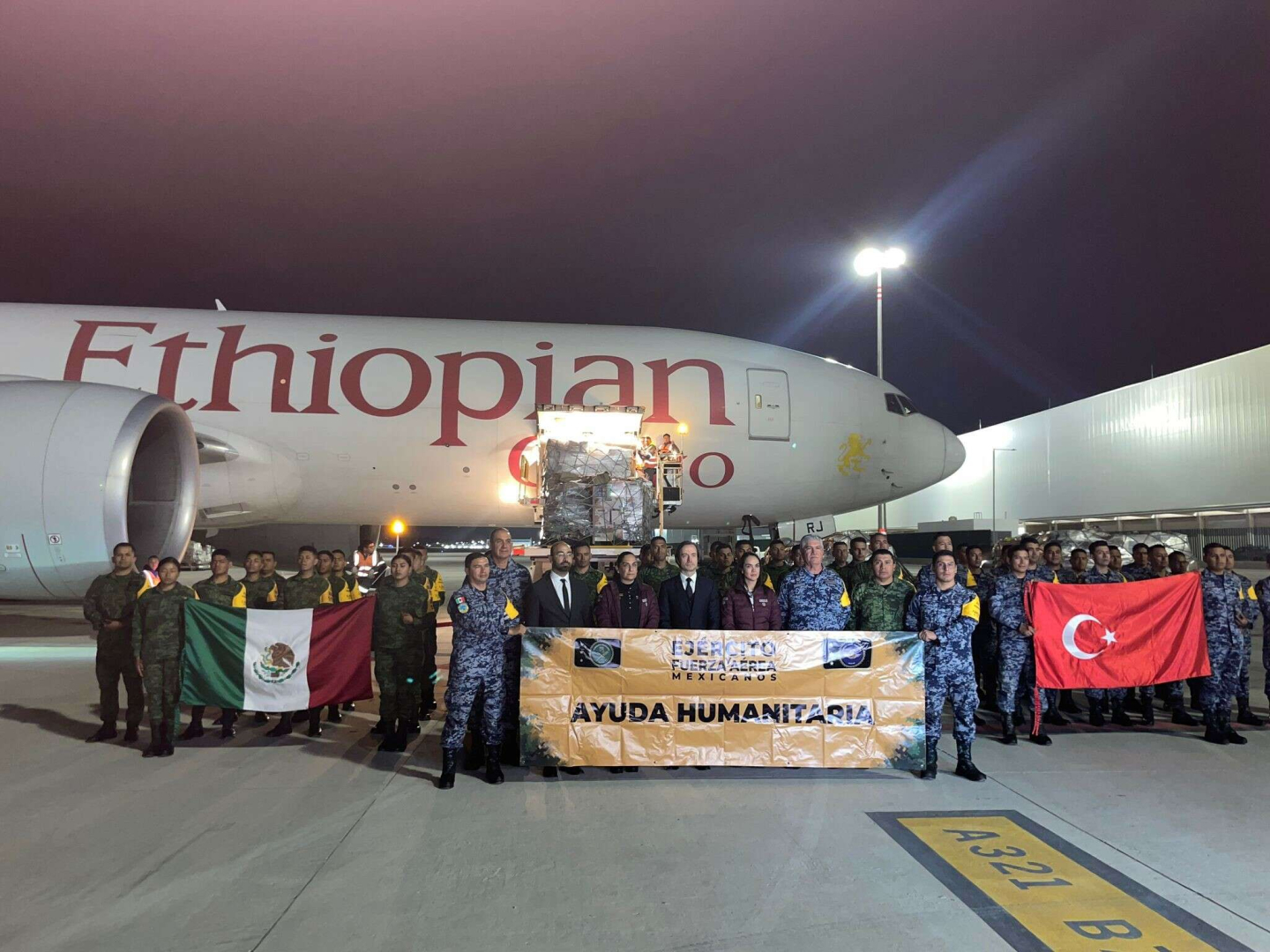 İnsani yardım malzemelerinin uçağa yüklendiği sırada, Meksika Savunma Bakanlığı yetkililerinin denetim yapmak üzere havaalanına geldiği aktarılırken, Türkiye'nin Meksika Büyükelçisi İlhan Kemal Tuğ’un da havaalanında bulunduğu açıklandı.