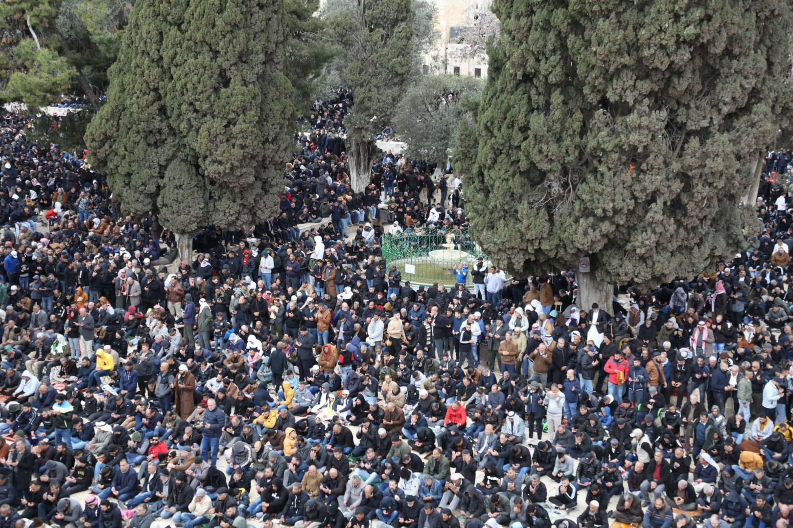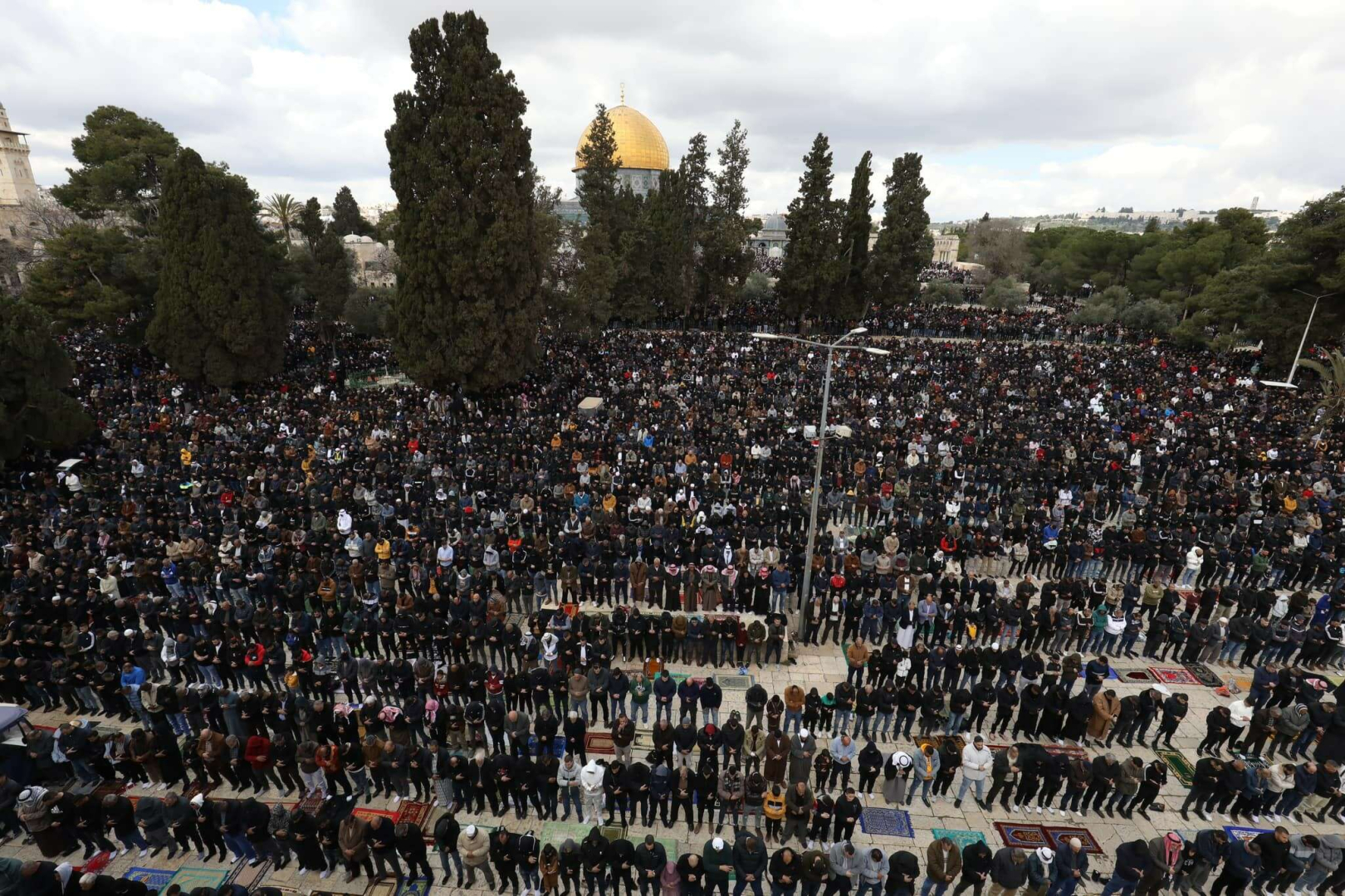 Ramazan ayının ikinci cumasında Filistin'de yaşayan Müslümanlar, işgal altındaki Doğu Kudüs'ün Eski Şehir bölgesindeki Mescid-i Aksa’ya akın etti.