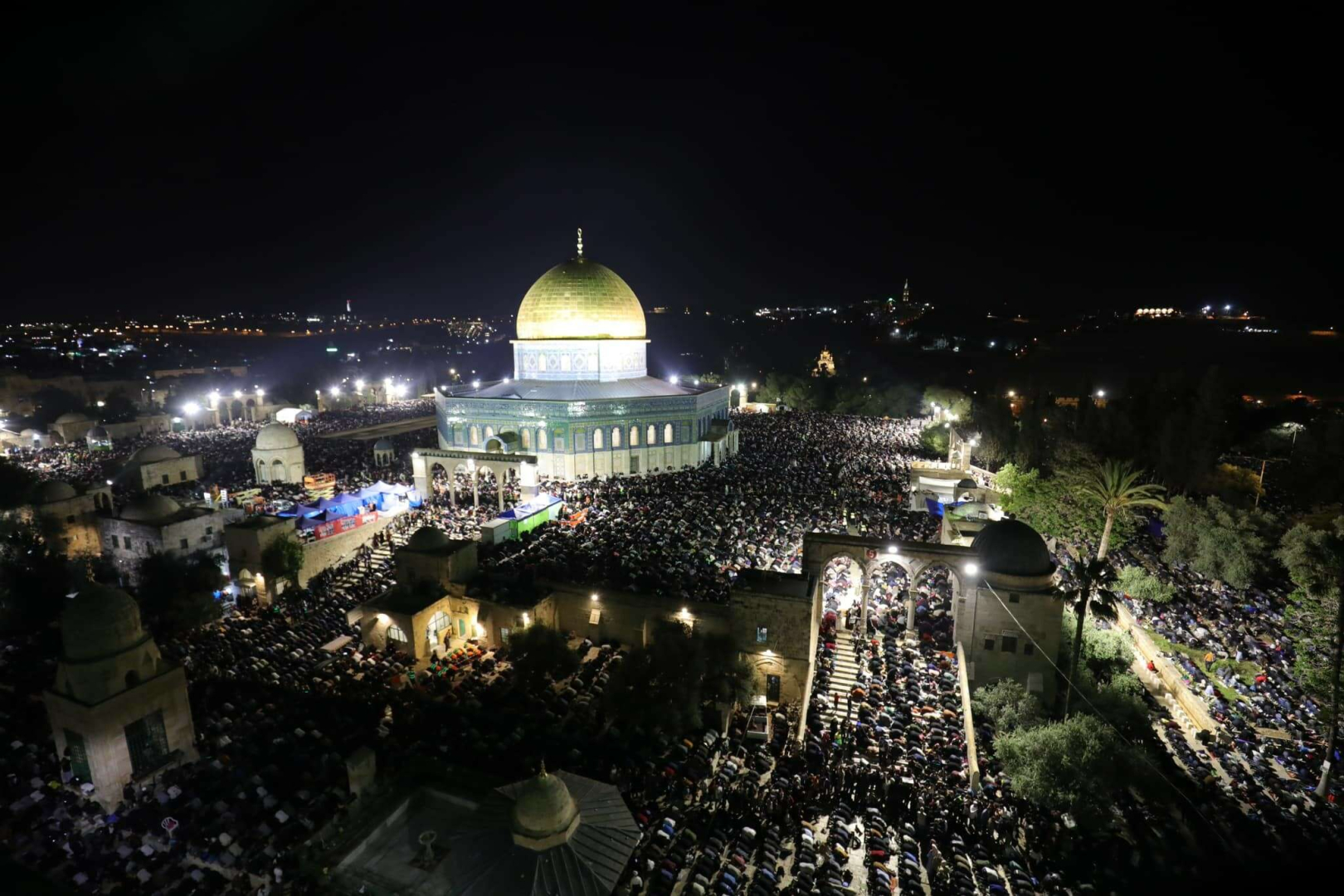 Binlerce Müslüman teravih namazını kılmak için Mescid-i Aksa ve avlusunu doldurdu. İslami Vakıflar Dairesi tarafından yapılan açıklamada, Kadir Gecesi’nde yaklaşık 280 bin kişinin Mescid-i Aksa’da olduğu ifade edildi.
