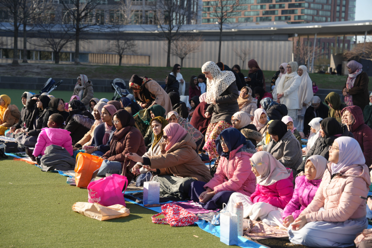 New York’un farklı bölgelerinde benzer görüntüler yaşanırken, bayram buluşmaları farklı milletlerden Müslümanları aynı safta bir araya getirdi.