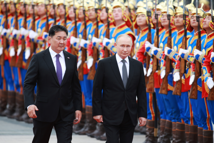 Rusya Devlet Başkanı Vladimir Putin, hakkında Uluslararası Ceza Mahkemesi (UCM) tarafından çıkarılan tutuklama emrine rağmen Moğolistan'a resmi ziyaret gerçekleştiriyor. Dün akşam saatlerinde Moğolistan'ın başkenti Ulan Batur'a gelen Putin, bugün Moğolistan Cumhurbaşkanı Ukhnaagiin Khurelsukh tarafından resmi törenle karşılandı. Rus lider, başkent Ulan Batur'un merkezindeki Sukhbaatar Meydanı'nda düzenlenen resmi karşılama töreninde iki ülke milli marşlarının çalınmasının ardından karşılama kıtasını selamladı. Daha sonra Putin ve Khurelsukh'a, iki ülke heyetleri tanıtıldı.