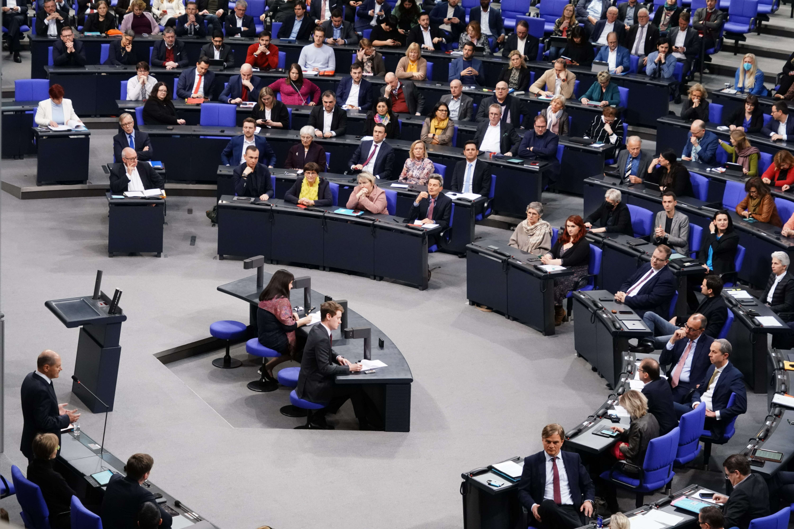 Bir milletvekili ise Scholz’u Ukrayna’ya tank gönderme kararı nedeniyle Almanya’nın savaş sonrası dönemde benimsediği ilkeleri ayaklar altına almakla suçlayarak, bugünü "tarihi bir gün" olarak nitelendirdi. Milletvekili Scholz’a hitaben, "Çatışma bölgelerine silah verilmemesi, Almanya'nın savaş sonrası dönem siyasetinin temeliydi. Tarihe bu temel ilkeleri ayaklar altına alan şansölye olarak geçeceksiniz" dedi. Scholz ise milletvekilene, "Rusya'nın saldırganlık savaşı emperyalist bir savaştır. Rusya, sınırlarını genişletmek için korkunç bir bombalama kampanyası başlattı" ifadelerini kullandı.