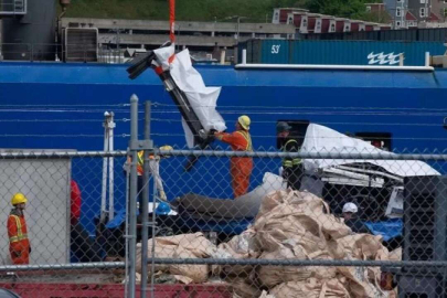 Titanik enkazına dalış yaptığı sırada Atlantik Okyanusu'nda kaybolan küçük denizaltının enkazı karaya çıkarıldı.
