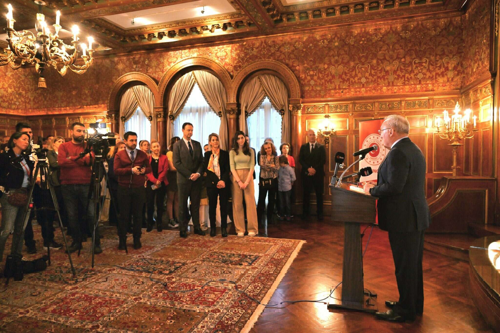 Büyükelçi Mercan yaptığı konuşmasında, “Belki hayatımın en zor konuşmasını yapacağım. Burada bulunmaktaki amacımız sizlere teşekkür etmektir. Gerçekten sizler olmasaydınız, sizlerin katkıları olmasaydı, biz burada hiçbir şey yapamazdık. İlk günden beri, depremin olduğu, cereyan ettiği ilk akşamdan itibaren istisnasız bütün vatandaşlarımız yardımımıza geldi, koştu, mesailerini bıraktılar. Kah bağış getirdiler kah yardım topladılar. Kah buraya gelip yardımları sınıflandırdılar, paketlediler. Bazı iş adamı arkadaşlarımız depolarını açtı. Bazı acil malzemeler vardı. Bu malzemeleri acil bir şekilde Türkiye'ye yollamak için gece gündüz çalıştık hep birlikte. Aslında hepimizin yaşadığı acıyı bir nebze olsun unutmak için, böyle görüyorum, hep koştunuz. Hiç tanımadığım arkadaşlar geldi, gençler geldi. Bugün de birçoğunu zaten tanımıyorum. Aslında sizlere diyecek hiçbir şeyim yok. Aradan bunca zaman geçti, 6 Şubat’tan bunca zaman geçti, sizlere teşekkür etmekten başka yapabileceğimiz hiçbir şey yok” diye konuştu.