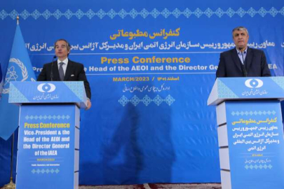 UAEA Başkanı Rafael Mariano Grossi, davet üzerine geldiği Tahran'da İran Atom Enerjisi Kurumu Başkanı Muhammed İslami ile basın toplantısı gerçekleştirdi.