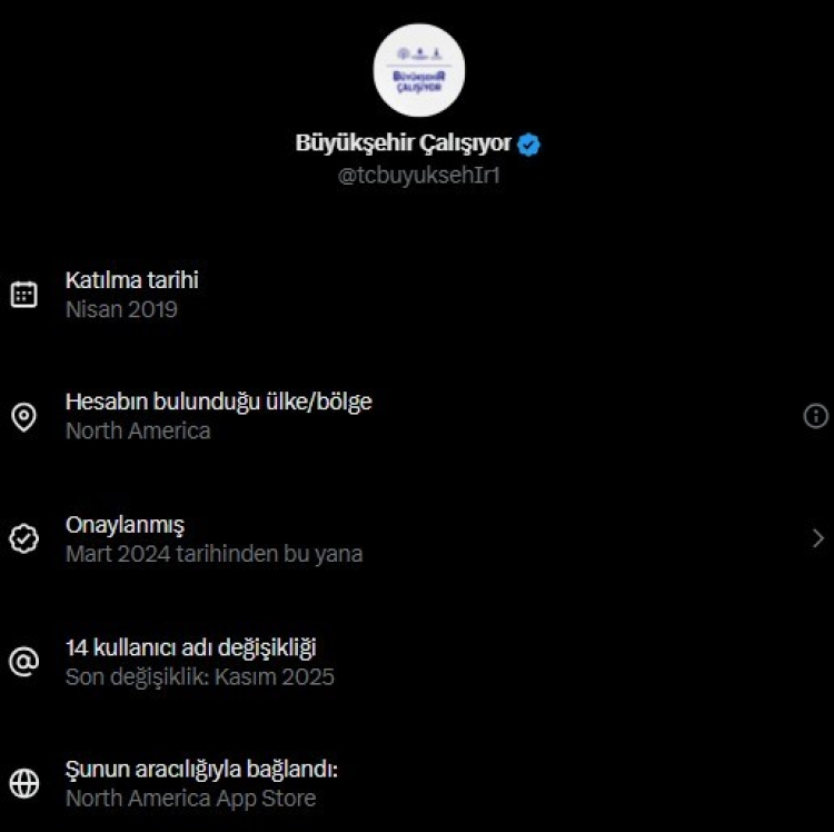 Ayrıca, kullanıcılar artık bir hesabın ne zaman oluşturulduğunu, doğrulama durumunu, kullanıcı adının kaç kez değiştirildiğini ve hangi ülkenin uygulama mağazası üzerinden bağlandığını görebiliyor. Böylece Türkiye'de paylaşım yapan bazı hesapların konumunun yurt dışında olduğu görüldü. "Ekrem İmamoglu News" kullanıcı adıyla açılan bir hesabın konumunun Kuzey Amerika olduğu, "Büyükşehir Çalışıyor" adlı kullanıcının ise yine Kuzey Amerika olduğu görülüyor.