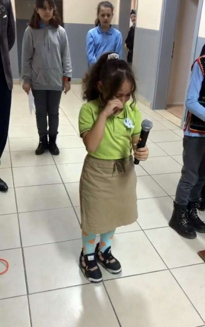 Atatürk şiirini okuyan minik gözyaşlarını tutamadı