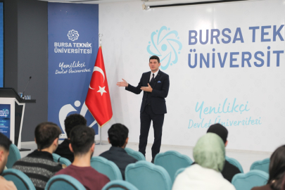 BTÜ Konuşmaları’nın konuğu olan ASKON Bursa Şube Başkanı Emre Yıldız, başarıya giden yolda izlenmesi gereken adımları paylaştı. Hedefin sürdürülebilir olmasının çok önemli olduğunu söyleyen Yıldız; öğrencilere, “Ne iş olursa olsun, onu küçümsemeden yapın, tüm çabanızı ortaya koyun, işinize sahip çıkın” tavsiyesinde bulundu.