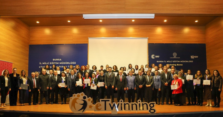 Bursa Millî Eğitim Müdürlüğü tarafından düzenlenen eTwinning Okul Etiketi Takdim Töreni, Sadettin Türkün Ortaokulu Konferans Salonu'nda gerçekleştirildi. Törene Bursa İl Millî Eğitim Müdürü Dr. Ahmet Alireisoğlu, eTwinning Ulusal Destek Servisi Koordinatörü Ertan Kocabaş, İl ve İlçe Millî Eğitim Müdürlüğü yöneticileri, Türkiye Teknoloji Takımı bölge sorumluları, proje mentörleri ve Bursa’da ödül almaya hak kazanan 41 okulun öğretmen ve yöneticileri katıldı.