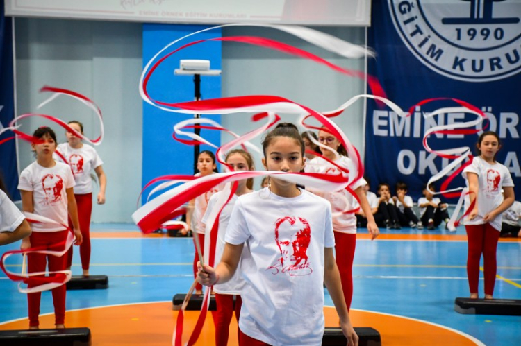 Atatürk’ün “Cumhuriyet’i biz kurduk, onu yüceltecek ve yaşatacak sizlersiniz.” sözünü kılavuz olarak alan Emine Örnek Okullarında, 29 Ekim Cumhuriyet Bayramı törenine saygı duruşu ve İstiklal Marşı ile başlandı.