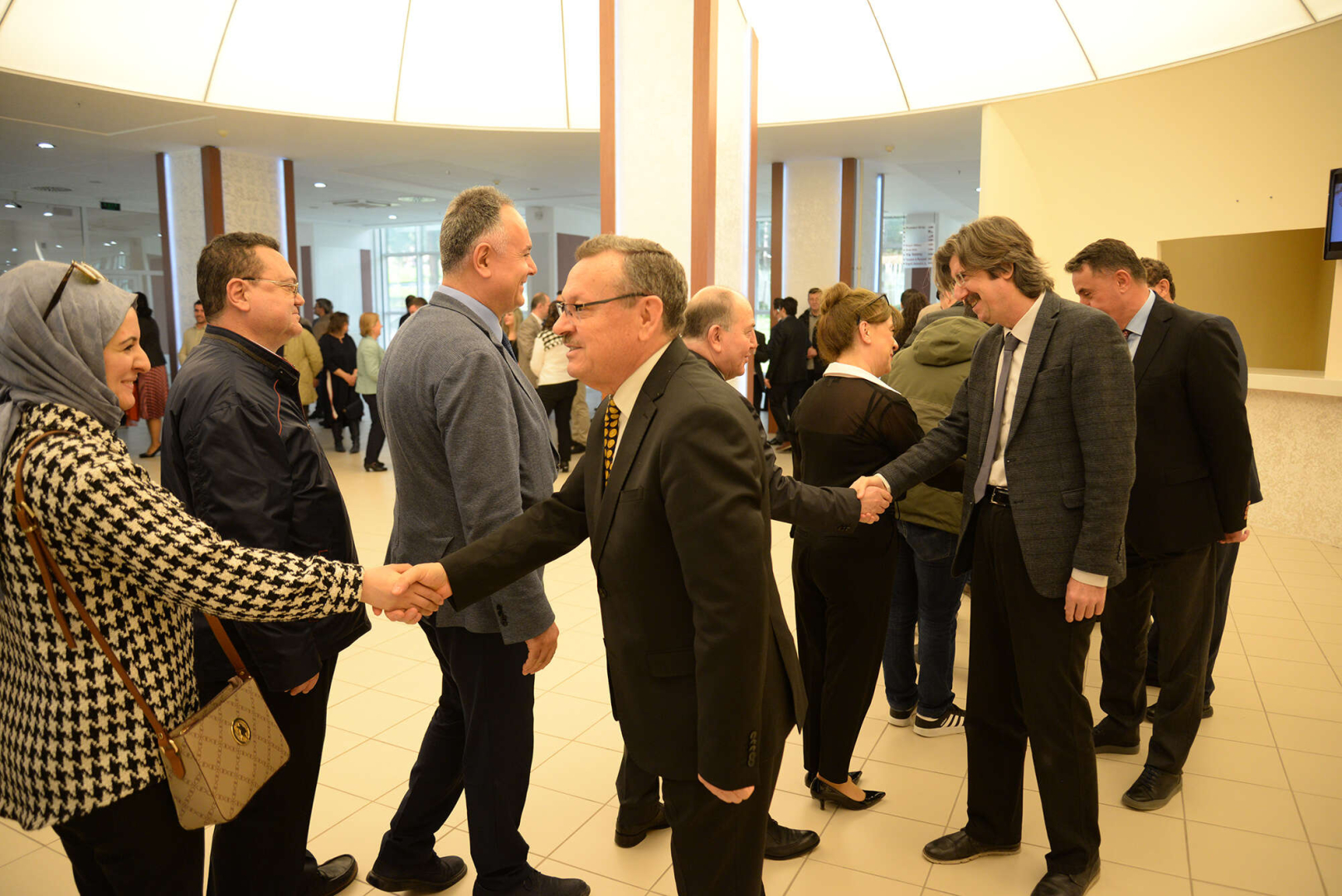 Prof. Dr. Mete Cengiz Kültür Merkezi’nde gerçekleştirilen bayramlaşma törenine Rektör Prof. Dr. Ahmet Saim Kılavuz, Rektör Yardımcıları Prof. Dr. Ferudun Yılmaz, Prof. Dr. İrfan Kırıştıoğlu ve Prof. Dr. Adem Doğangün, Üniversite Genel Sekreteri Osman Dikmen, akademisyenler ve idari personel katıldı.