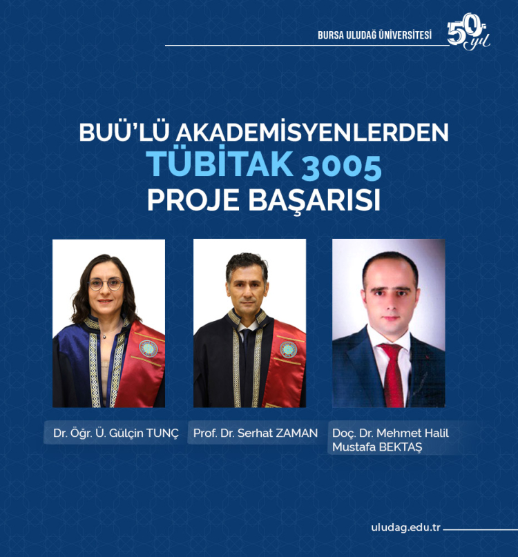 Bursa Uludağ Üniversitesi (BUÜ) akademisyenlerinden Prof. Dr. Serhat Zaman, Doç. Dr. Mehmet Halil Mustafa Bektaş ve Dr. Öğr. Ü. Gülçin Tunç hazırladıkları projeler ile TÜBİTAK’tan destek almayı başardı.