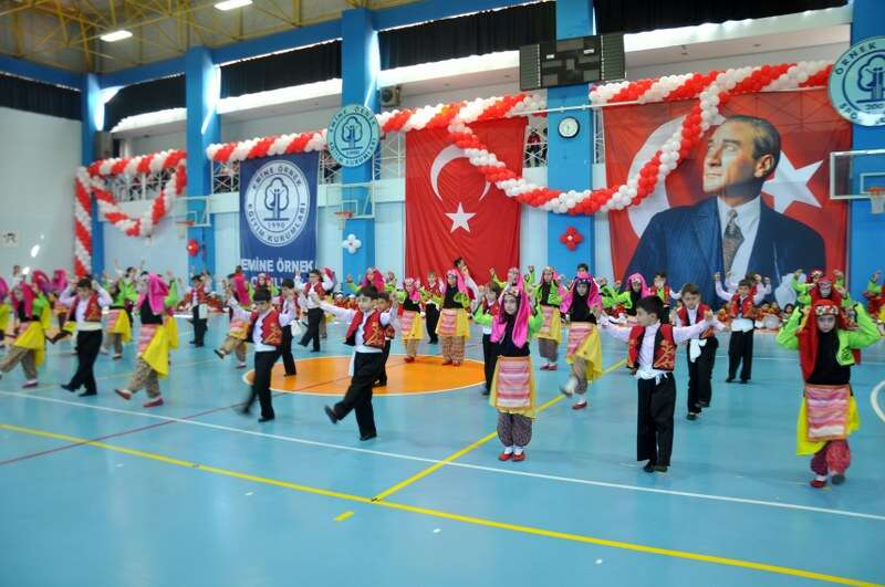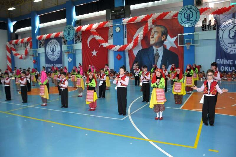 1. sınıf öğrencileri “Halk Dansları Trakya Potpuri” sini, 3. sınıf öğrencileri ‘‘Muğla-Fethiye Halk Oyunları”nı gururla sundular. “Bugünün küçükleri, yarının büyükleriyiz!” diyen 4. sınıfların Ege Bölgesi “Zeybek’’ gösterileri ve 23 Nisan şiirleri ile devam etti.