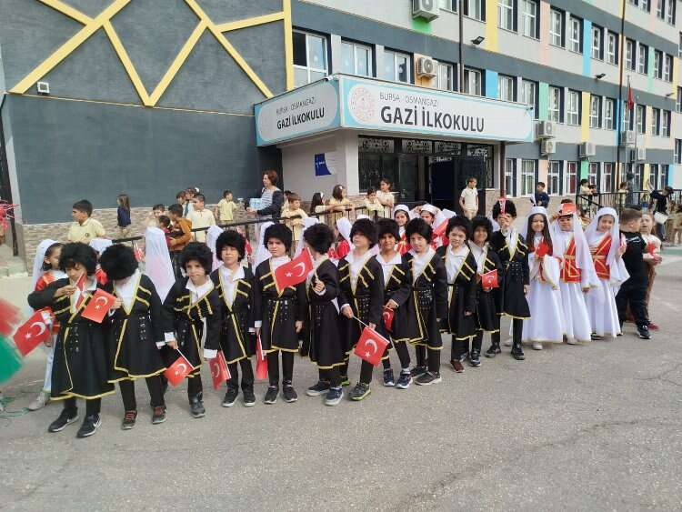 Ülkemizin kurucusu ulu önder Mustafa Kemal Atatürk’ün çocuklara armağan ettiği 23 Nisan Ulusal Egemenlik ve Çocuk Bayramı öncesi Gazi İlkokulu öğrencileri, öğretmenleri ve velileri bir araya gelerek Bursa BB Bandosunun performansıyla bayram coşkusunu sokaklara taşıdı.