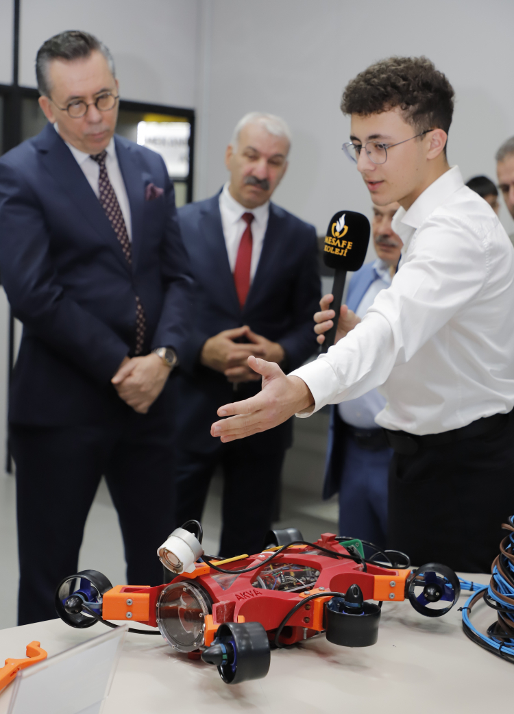 Final öncesinde protokol üyeleri ve jüri heyeti, Mesafe Koleji İnovasyon Servisi’ni ziyaret ederek öğrencilerin geleceği dönüştürmeye aday projelerini ilgiyle inceledi. Program, okul kurucusu Mustafa Dağlı’nın ilham veren açılış konuşmasıyla başladı.