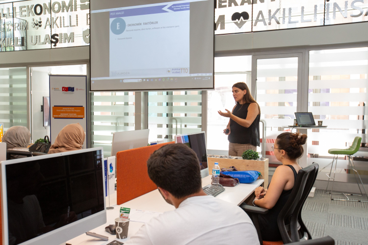Proje kapsamında Uludağ Teknoloji Transfer Ofisi Müdür Yardımcısı Nihal Yıldırım tarafından ‘Girişimcilik Ekosistemi’, Uludağ Teknoloji Transfer Ofisi FSMH ve Ticarileştirme Koordinatörü Sevcan Kalender tarafından ‘Fikri ve Sinai Haklar’, Uludağ Teknoloji Transfer Ofisi Girişimcilik ve Şirketleşme Koordinatörü Yarenur Türe tarafından ‘İş modeli ve müşteri doğrulama, pazar ve rakip araştırması’ konularında eğitimler verildi.