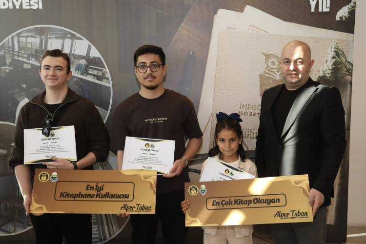 İnegöl Belediyesi, Kütüphaneler Haftası kapsamında 5 Nöbetçi Kitaphanenin En’lerini belirledi. “En Çok Kitap Okuyan” ve “En İyi Kullanıcı” seçilen öğrenciler, ödüllerini Belediye Başkanı Alper Taban’dan aldı.